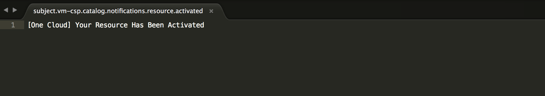To define a subject line for the Resource Activation scenario, create a template as: subject.vm-csp.catalog.notifications.resource.activated.