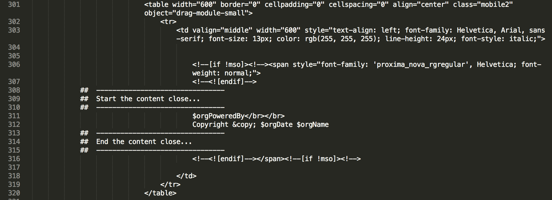 • ​main.vm: Required. This is the main message and is defined by including / parsing additional template files.